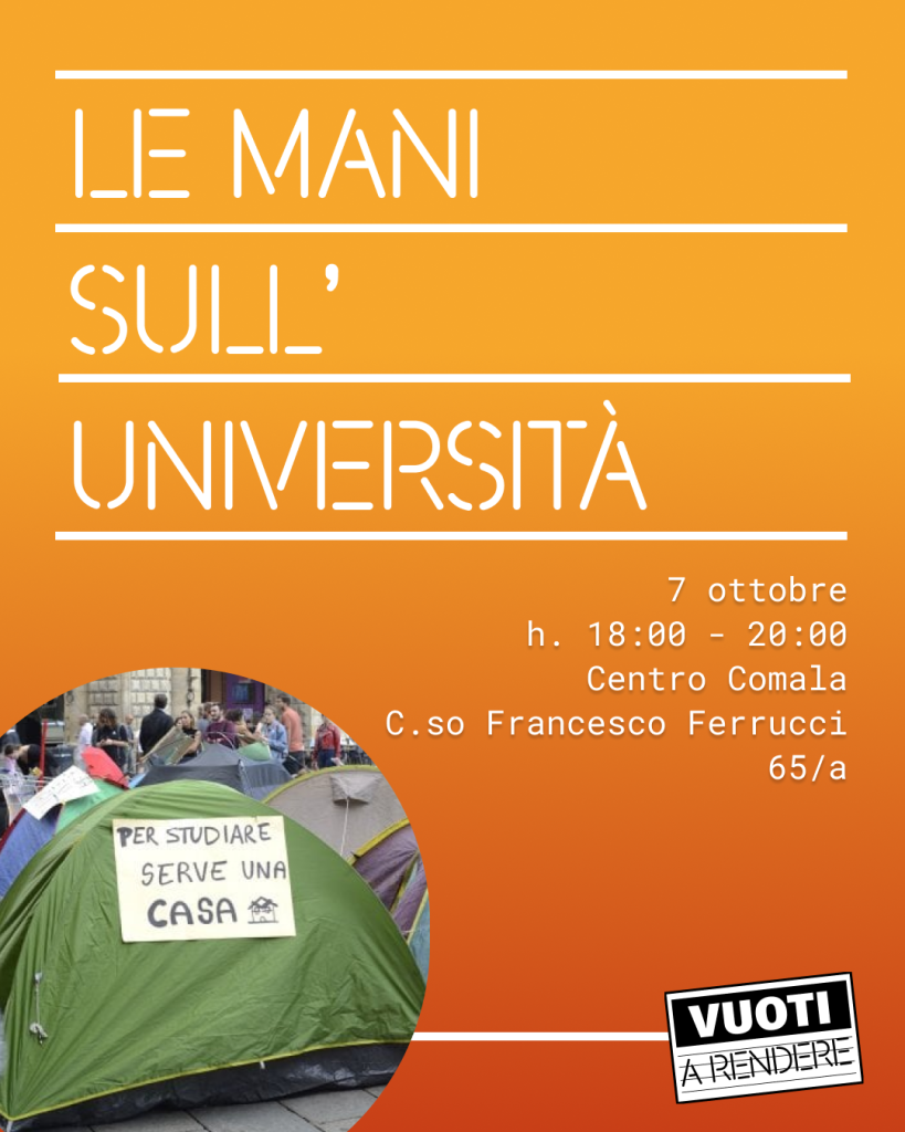 7 Ottobre 2025 @ 18:00 – 20:00 – Diritto allo studio, speculazione e abitare studentesco Come influenzano le residenze universitarie la nostra città? Parliamo degli effetti della speculazione immobiliare sul diritto allo studio e sulle condizioni di vita degli studenti: quali sono le sfide attuali e le possibili soluzioni per garantire spazi accessibili e sostenibili. 🎤 Ne parliamo con: 𝐌𝐚𝐭𝐭𝐢𝐚 𝐅𝐢𝐨𝐫𝐞 – Università […]